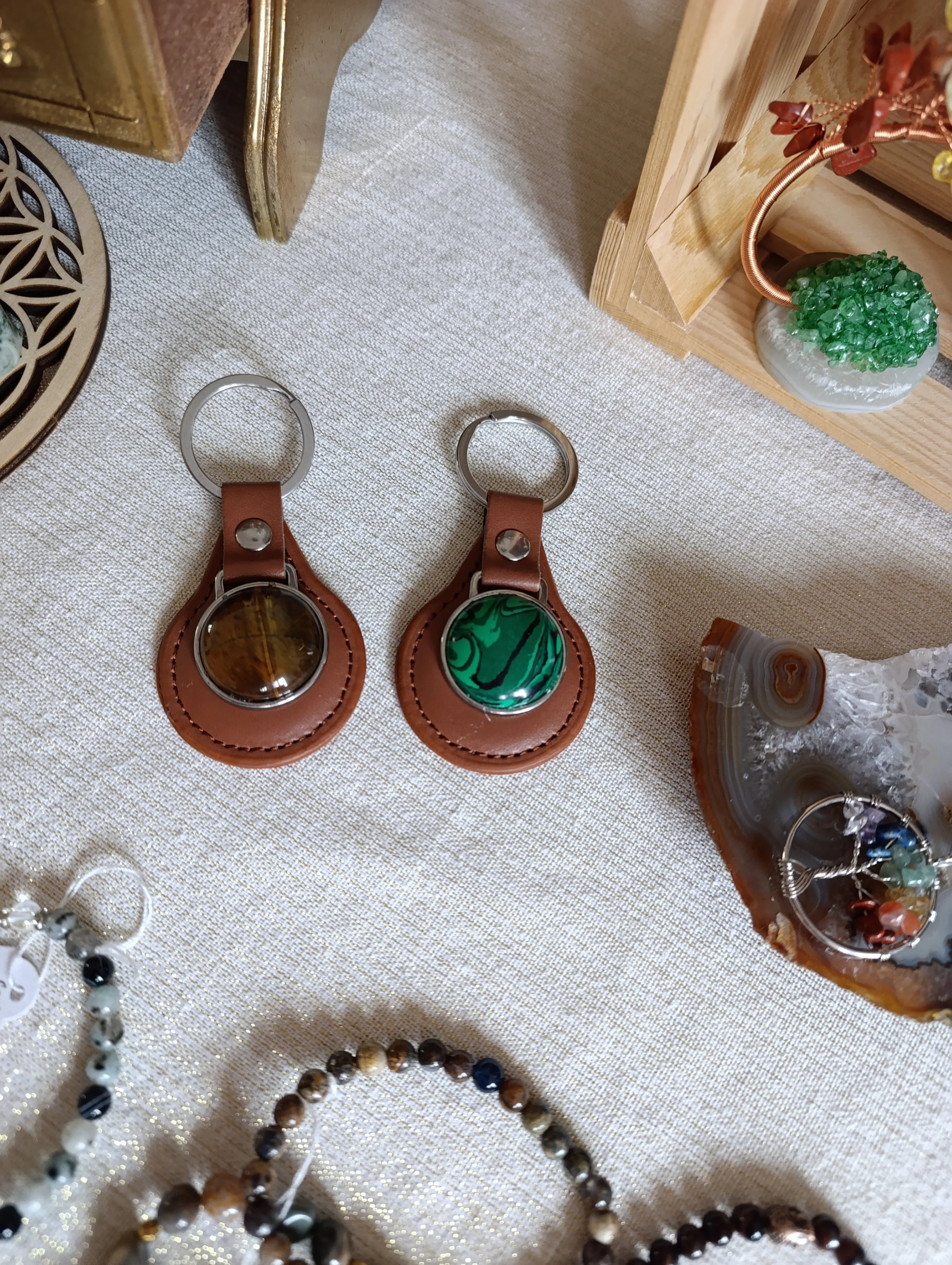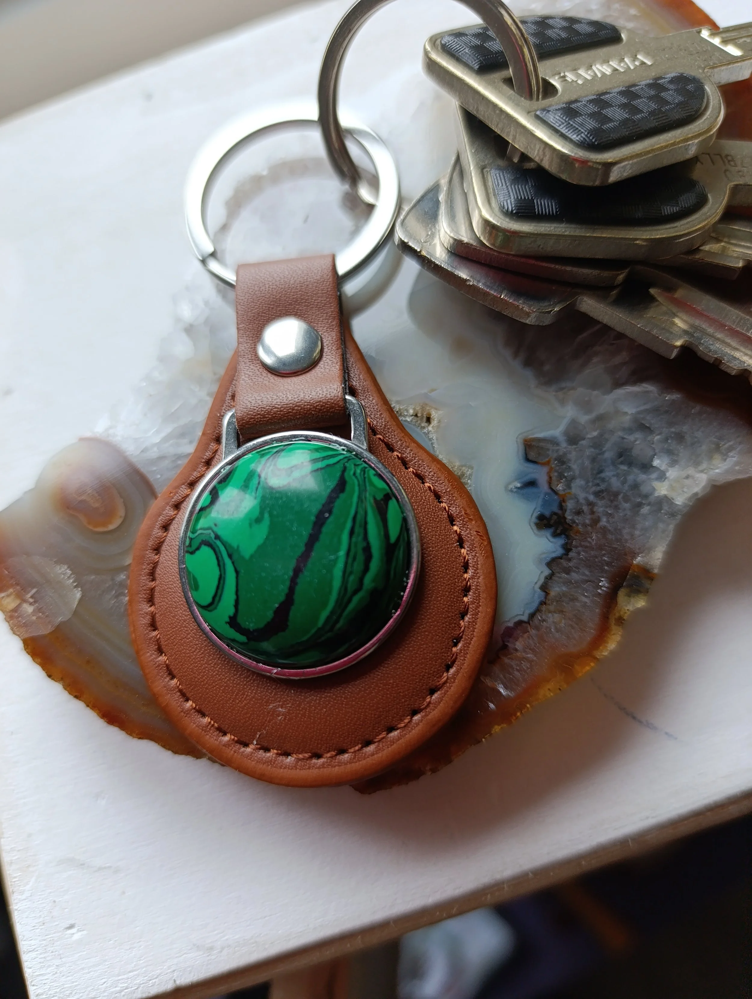 Porte clés simili cuir et pierre cabochon