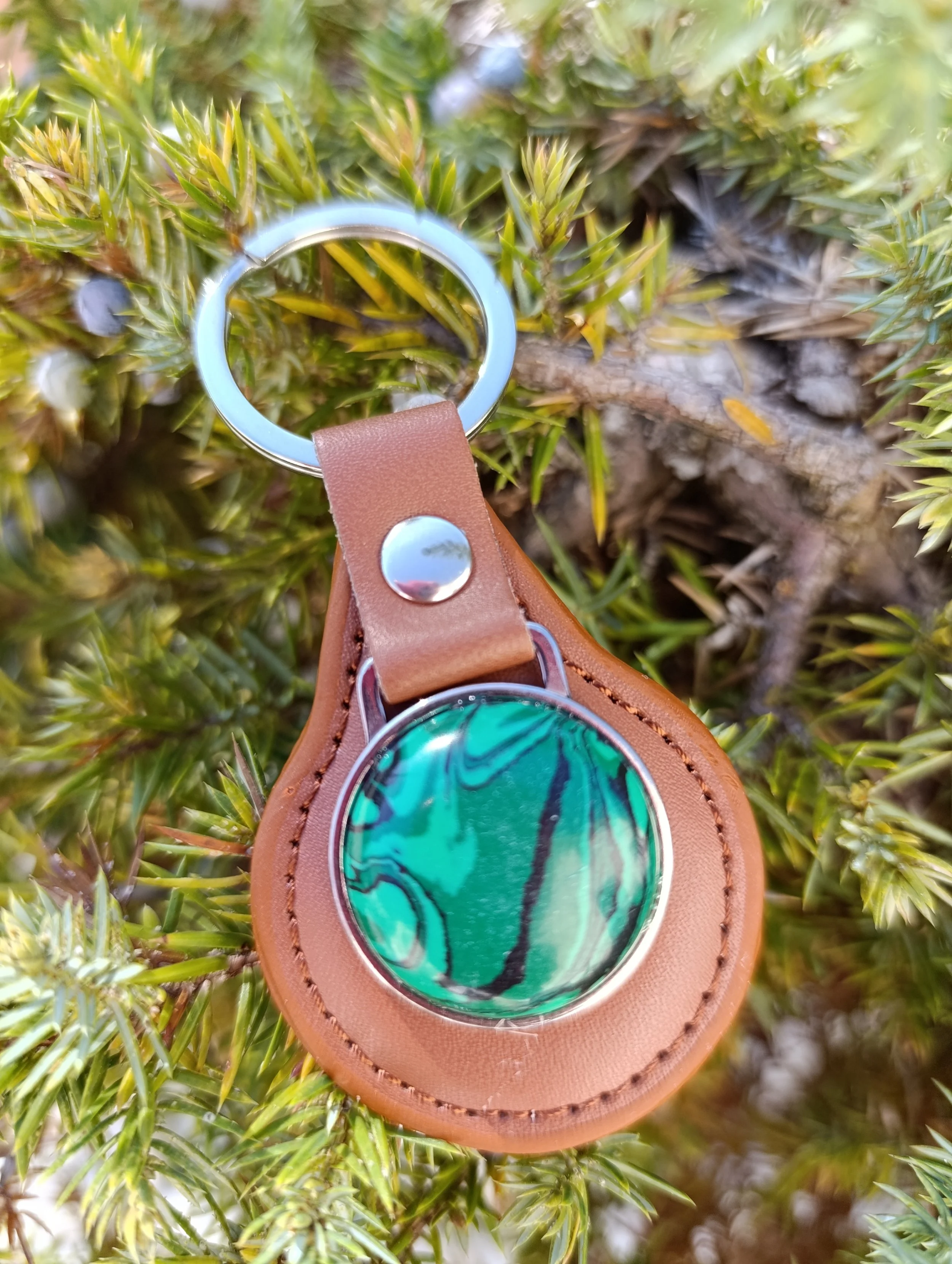 Porte clés simili cuir et pierre cabochon 25mm
